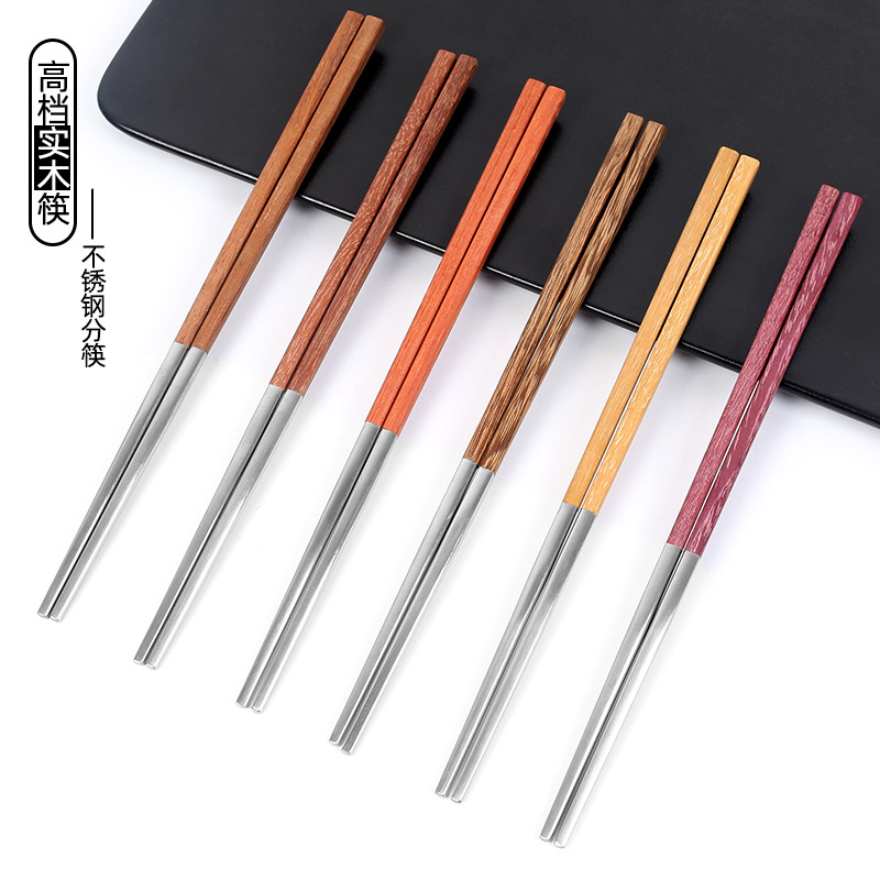 新商品304ステンレスステッチ木製家庭用箸高級手羽木セットホテル箸メーカー卸売り