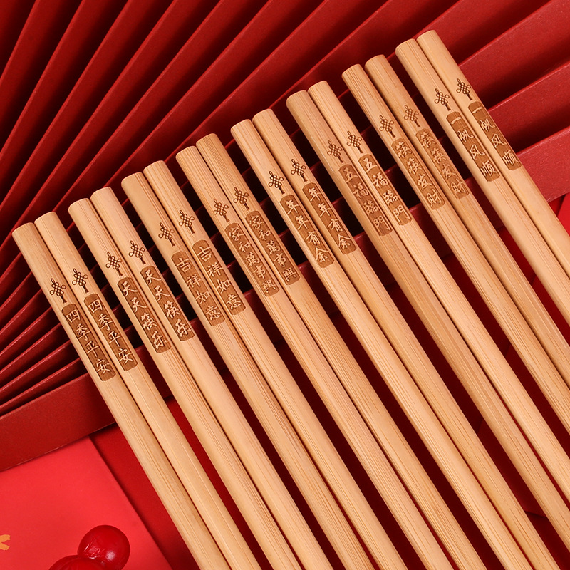 家庭用竹箸卸売り開門紅無漆無ワックス箸10双国潮風紅包礼箱箸現物