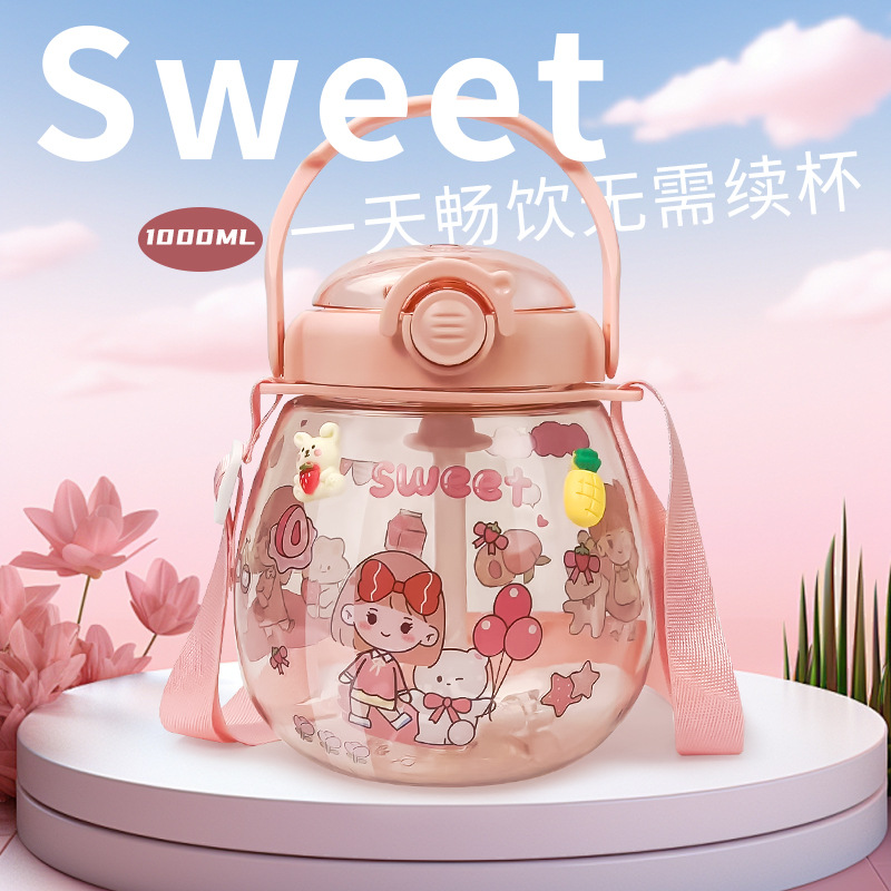 新品1000ml大容量フルーツ味コップ味味コップクロスボーダーストローコップtritan匂いコップ