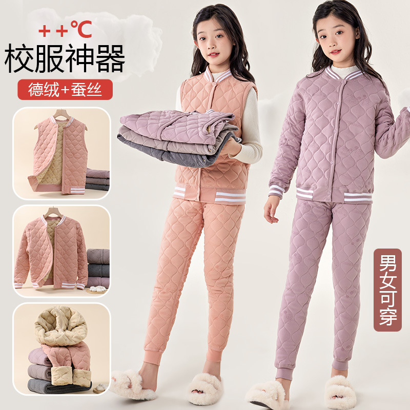 子供は秋冬に保温シルクの綿のベストセットを厚くします。