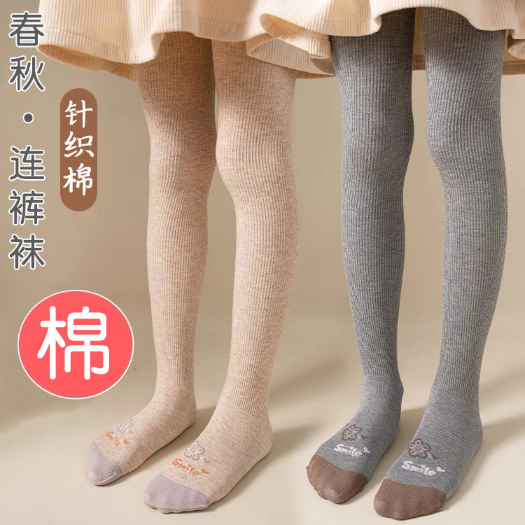 女の子の春秋の薄いタイプのレギンスの外は綿の縦縞の小さい足の足の足の底の滑り止めの子供のタイツの卸売りを着ます。