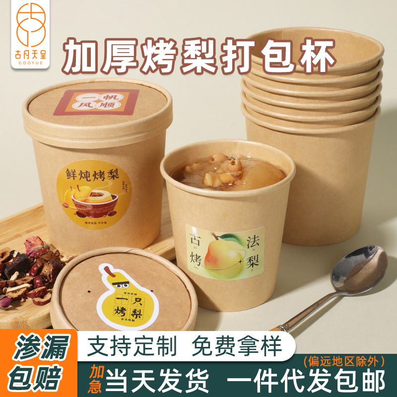 焼き梨カップ使い捨てクラフト紙スープ桶商用蓋付き食品級銀耳煮込みシドニー焼き梨専用包装桶