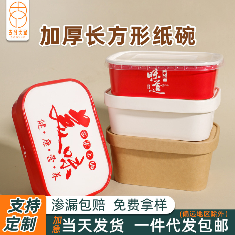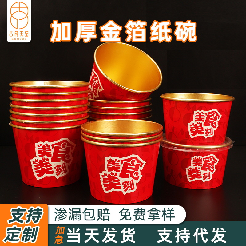 古月天は使い捨ての紙碗の箱の中の卸売りをして蓋を持って注文して商用の軽食の食品級のテイクアウトして紙の碗を包装します。