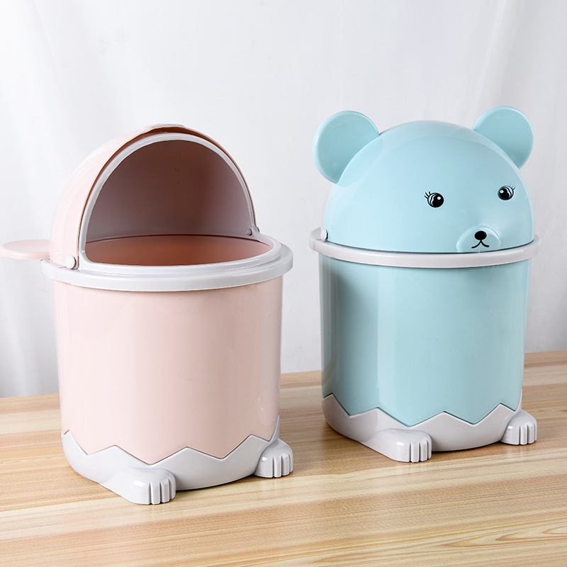 デスクトップの熊は漫画の北欧のゴミ箱の浴室の収納桶のミニ家庭の客間をひっくり返してごみのかごを厚くします。