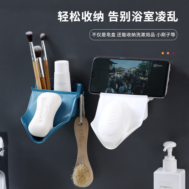 創意帯携帯ホルダー付き水切り棚石鹸ケース収納水切り棚風呂無痕貼りフック石鹸ケース