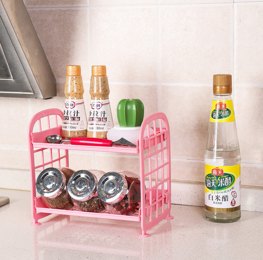 創意二階の透かし彫りのプラスチック棚のデスクトップの台所の整理棚の浴室の二重化粧品の収納棚