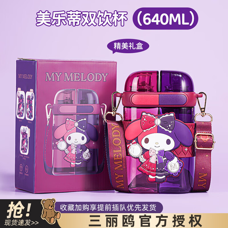 サンリオダブルドリンク子供用コップ夏クロミー学生専用ダブルタンクストローケトル饮み物コップ