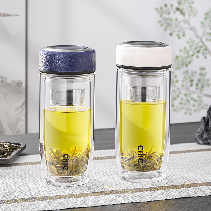 希楽ビジネス二重グラスワオ携帯フィルター付き家庭用ビジネスオフィスお茶コップ