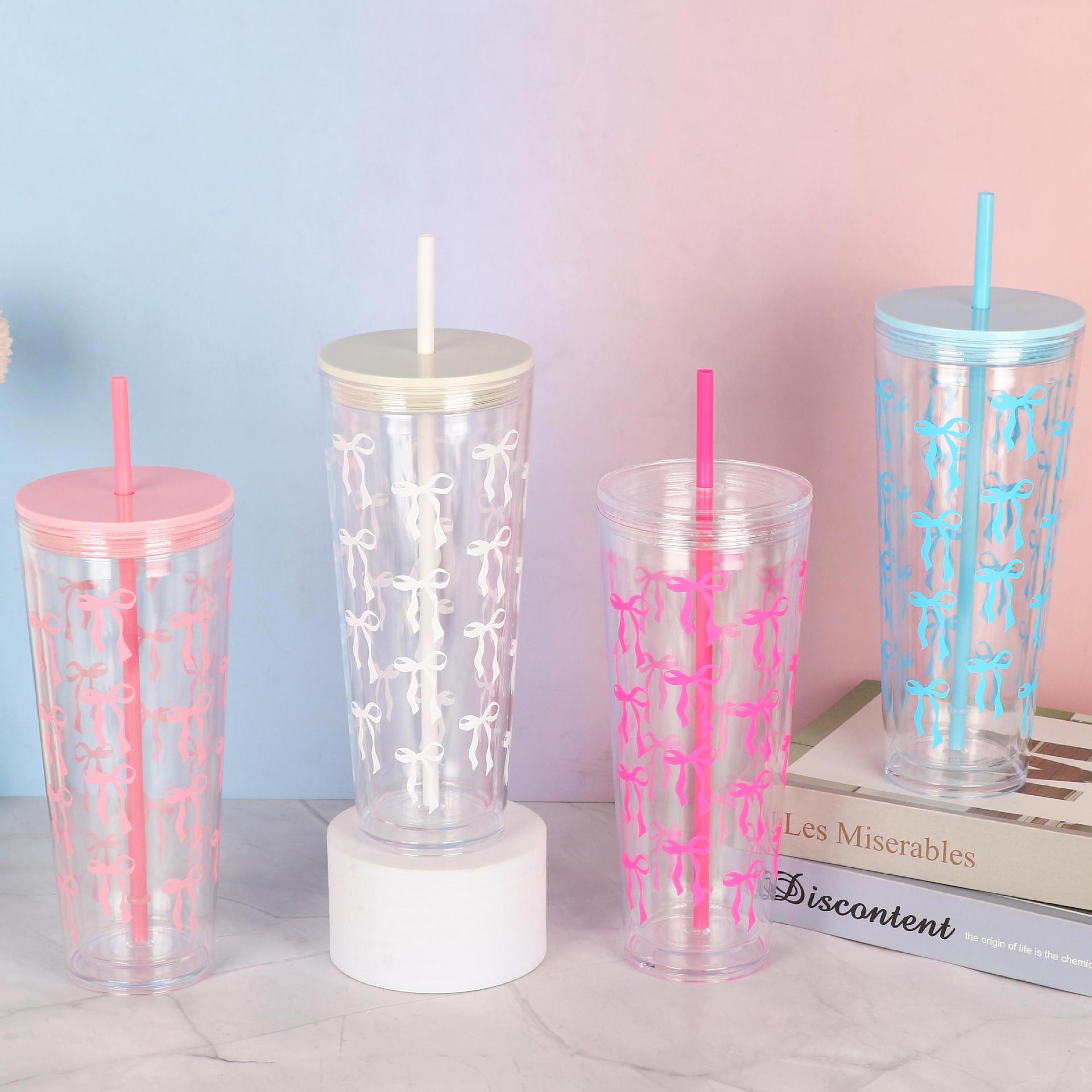 新しい 24 オンス二層プラスチックカップカラフルな透明ストローカップ屋外ポータブル車の飲料カップ