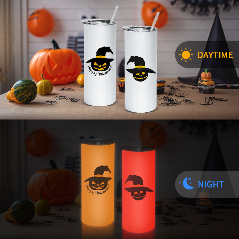 20オズスキニー热升华ストレートカップステンレス保温ストレートナイトライト蛍光カップストレートカップ白変色绿/青