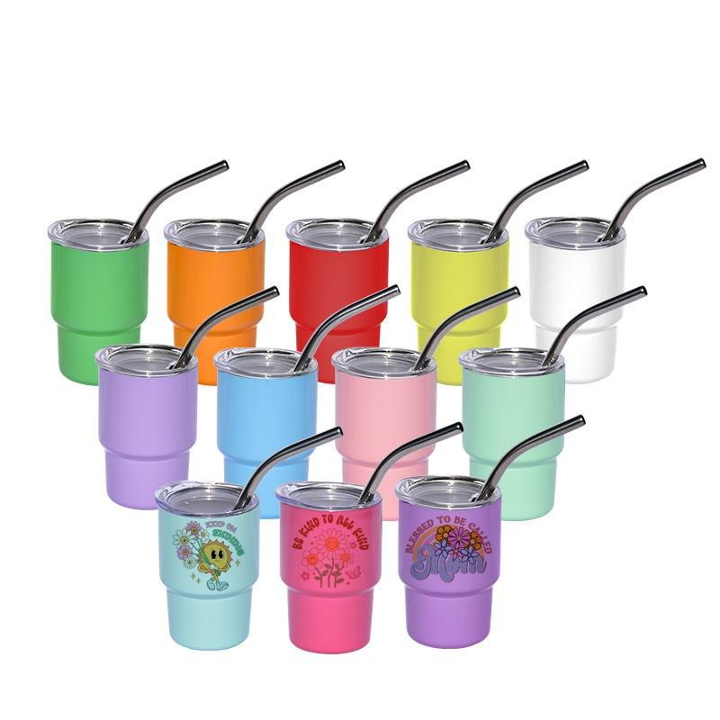 クロスボーダー爆金3ozミニグラス304ステンレス製ストロー付き保温カップ強いグラス保冷コーヒーカップ