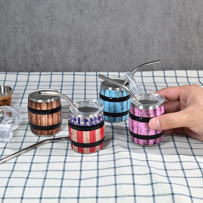 クロスボーダー3ozクリエイティブ木目ビール桶304ステンレスグラスu型ミニストロー卵殻カップ卸売り