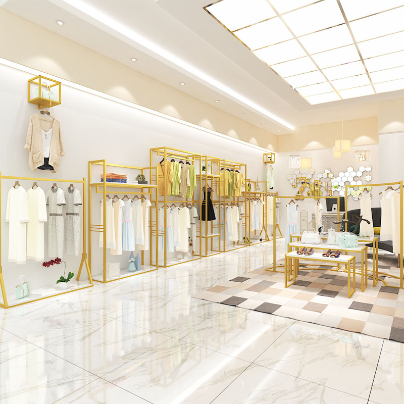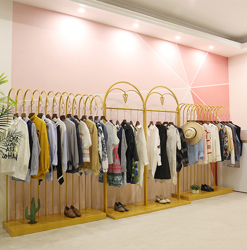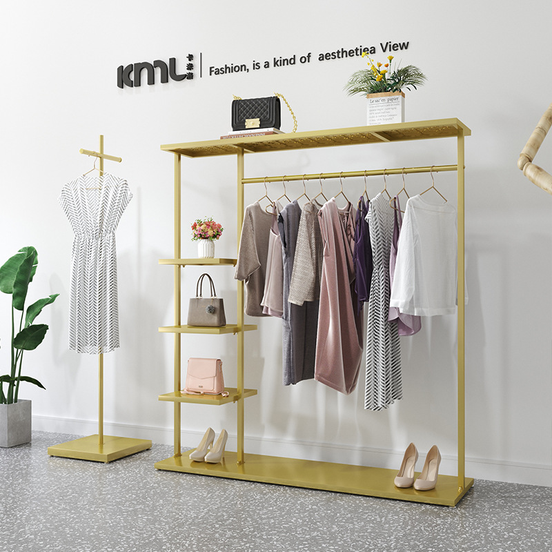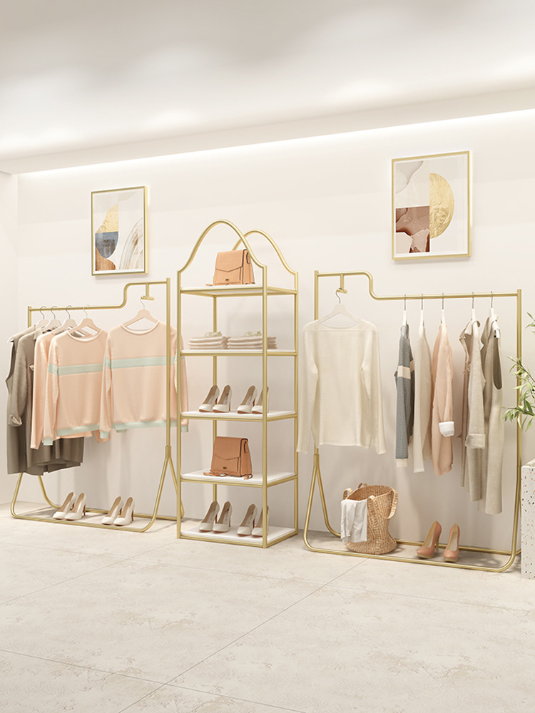 金色服装店展示棚床置き式服装棚婦人服店棚側掛け棚ハンガーハンガー鉄芸