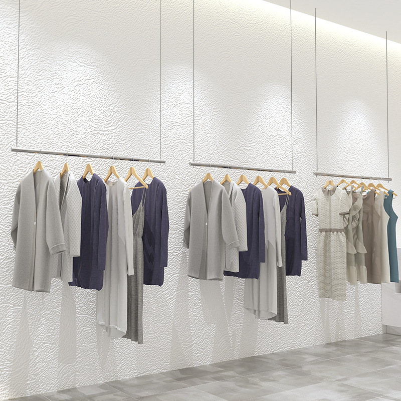 ステンレス衣料品店吊り天井棚ハンガーシルバー上壁男女子供服ワイヤー吊り下げ棚展示棚