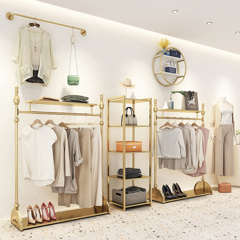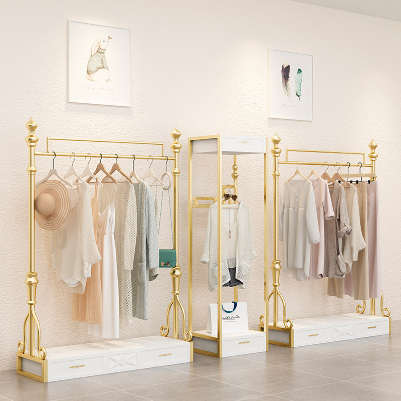 洋服店展示棚床置き式婦人服店陳列棚ハンガー専用金色ヨーロッパ式洋服棚