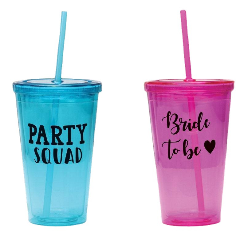 来図は国境を越えたアマゾンの二重プラスチックカップストローのストレートカップを熱転写できるロゴのシルク印刷ロゴを決めることができる