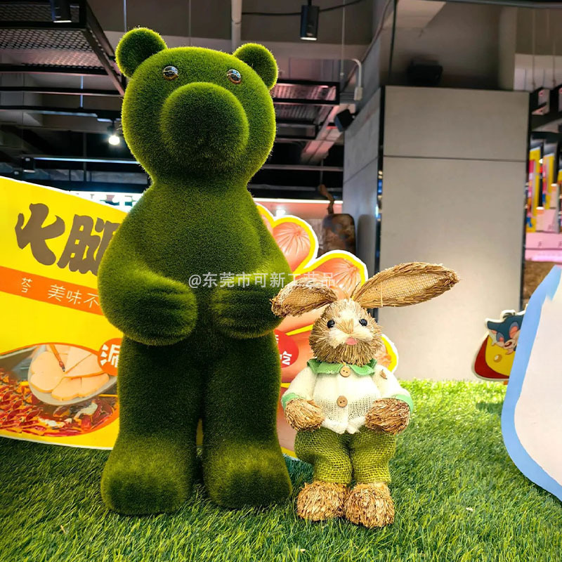 コケフクロウ動物熊植毛工芸品ショーウインドー森系グリーン装飾クリスマス装飾