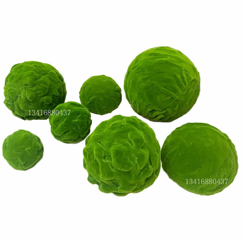 コケの植毛ボールをシミュレーションして、ショーウインドーを飾って、柔らかい吊り天井の森系の微景観装飾の撮影道具を作ります。