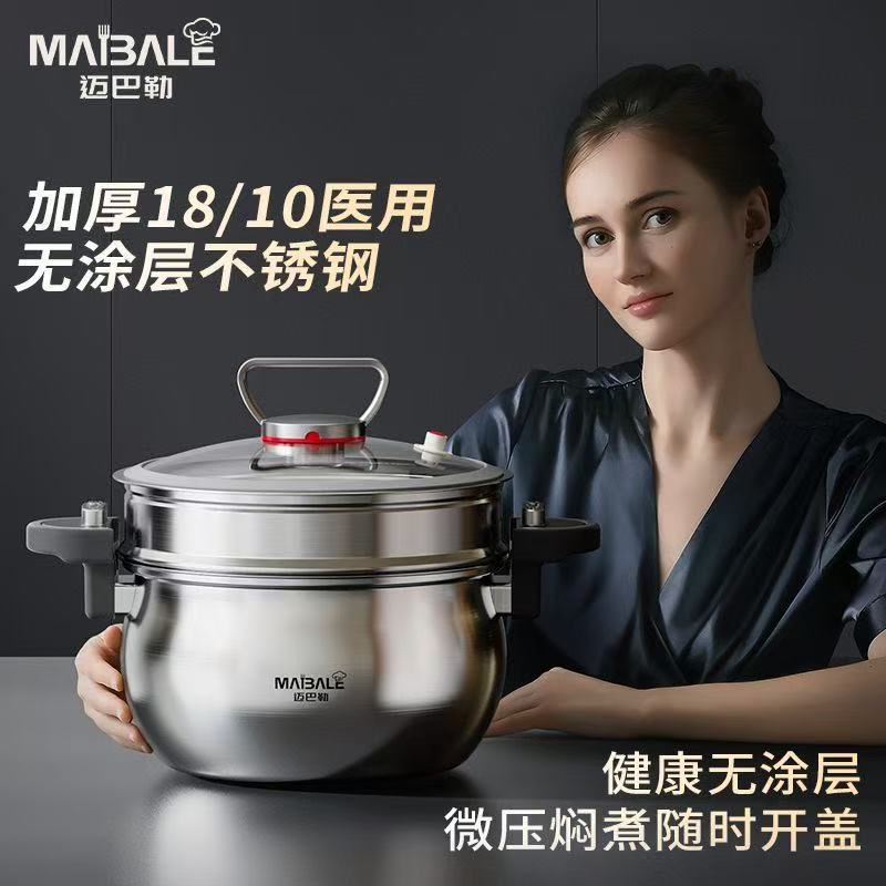 マイバラ大容量厚型防爆圧力鍋、万能蒸し調理一体型家庭用ステンレス製マイクロ圧力鍋スープポット