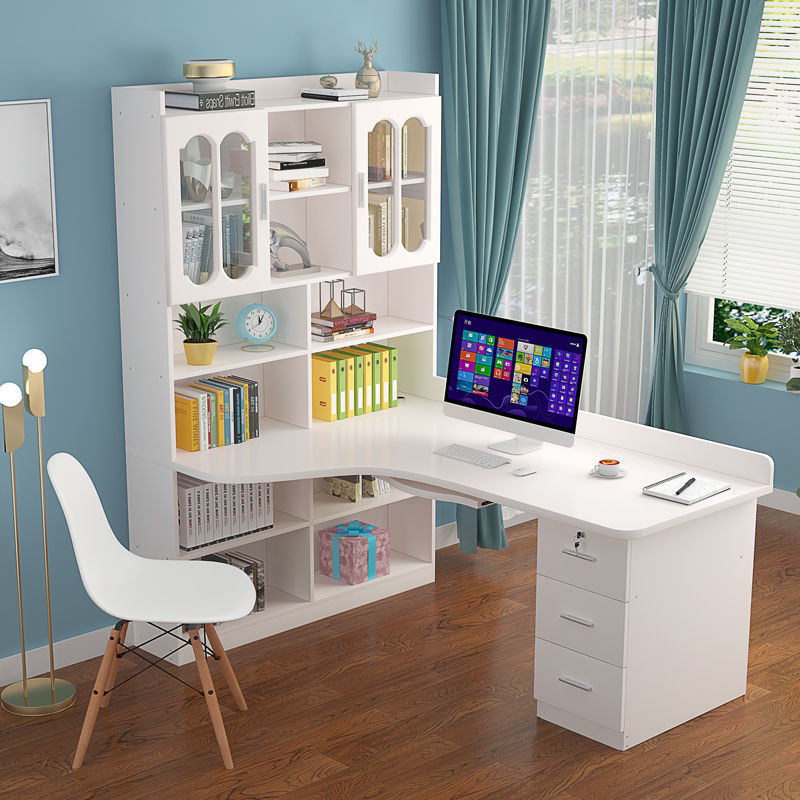 無垢材コーナーデスク本棚コンビネーションコンピュータデスクトップテーブル本棚一体型ホーム子供の寝室コーナー学習テーブル
