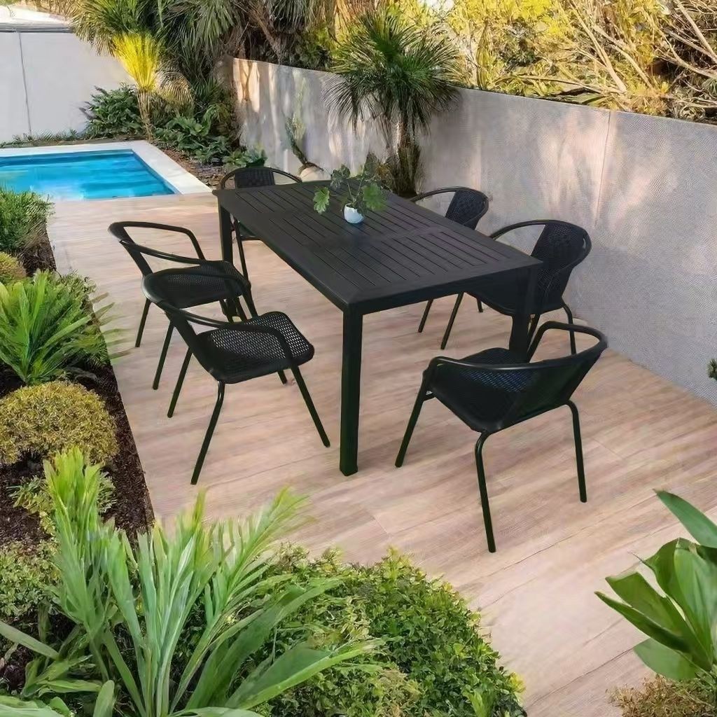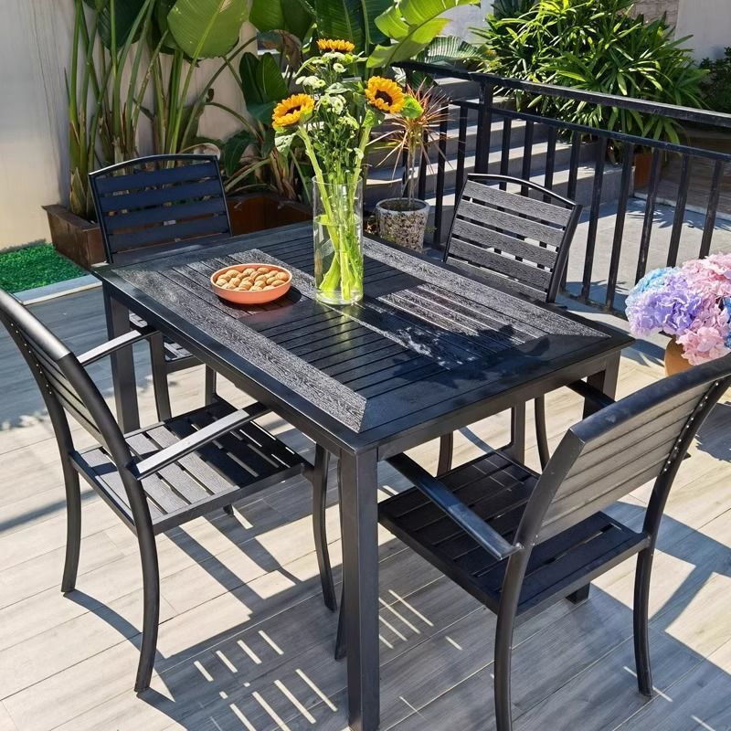屋外テーブルと椅子、プラスチック木製中庭テーブルと椅子、屋外オープンエアガーデンバルコニー、レジャーヴィラ、商業街ミルクティーショップテーブルと椅子