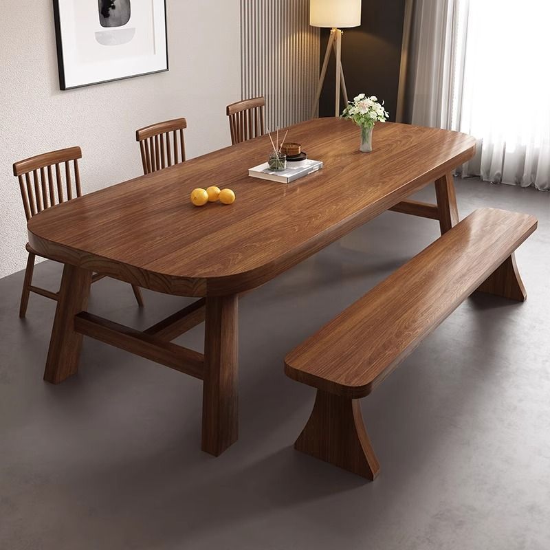 総無垢材のダイニングテーブルと椅子の組み合わせレトロスタイルホームレストランシンプルモダンな小さなアパートのダイニングテーブルロングダイニングテーブルデスク