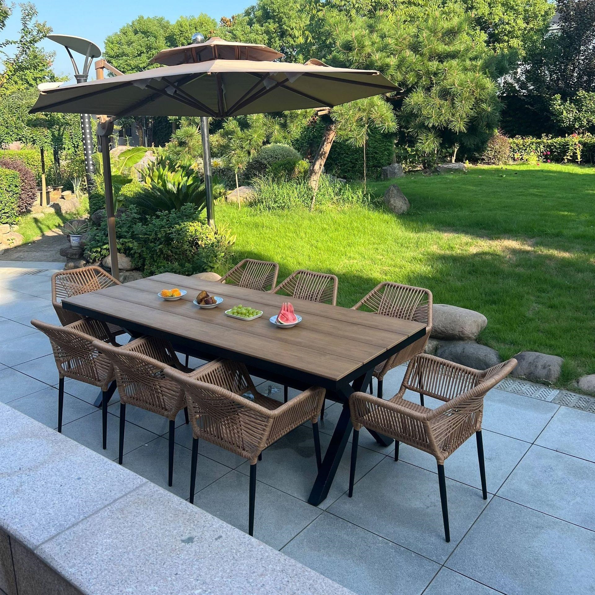 屋外テーブルと椅子セットプラスチックウッドレジャー屋外ヴィラ中庭カフェ屋外バルコニー防水日焼け止めテーブルと椅子
