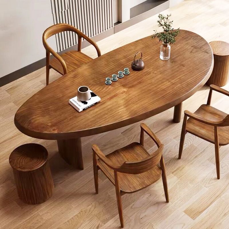 フレンチレトロダイニングテーブル無垢材ダイニングテーブルと椅子の組み合わせ長方形家庭用楕円形コーヒーテーブルティーテーブルパーソナライズされたティーテーブル