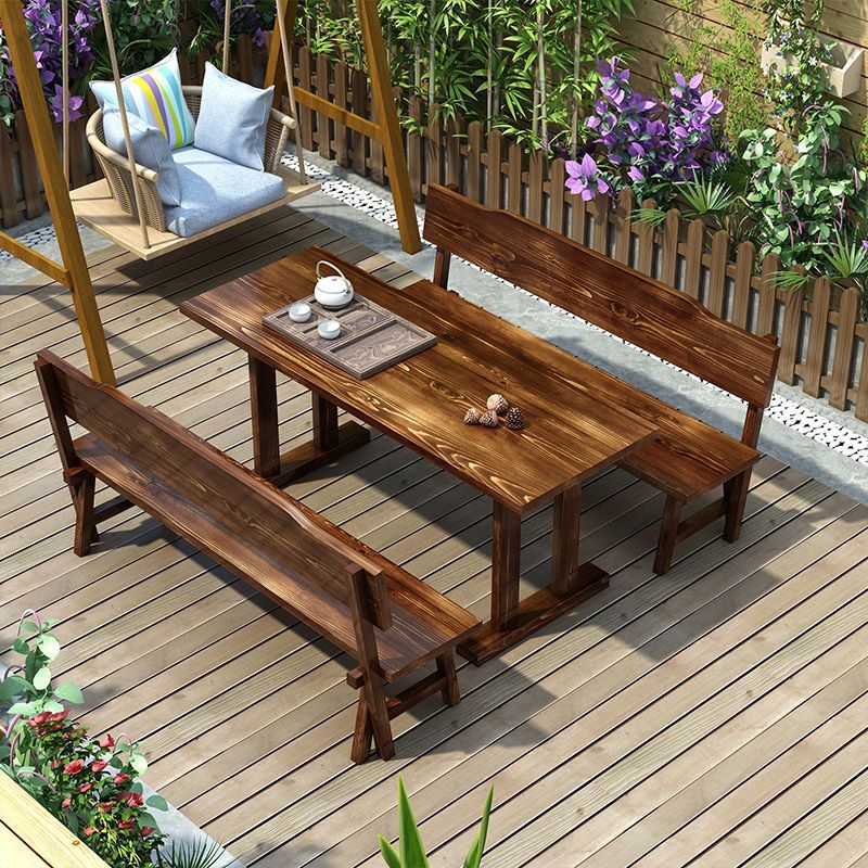 屋外中庭牧歌的なスタイルのダイニングチェアティーテーブル商業無垢材テーブルと椅子の組み合わせバーネットレッドテーブルと椅子ホテルのテーブルと椅子
