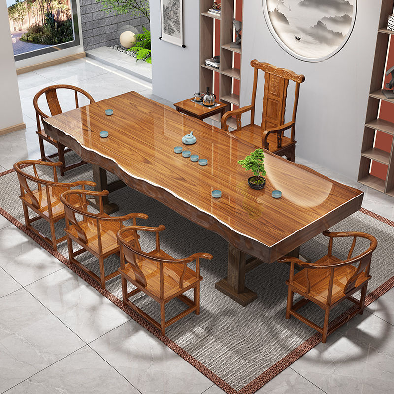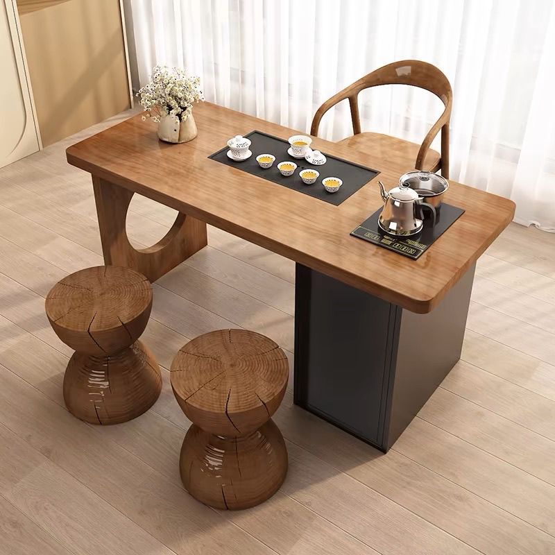 大板丸太無垢材ティーテーブルと椅子の組み合わせフルカットティーテーブルリビングルームホームオフィスティーオールインワンティーテーブル