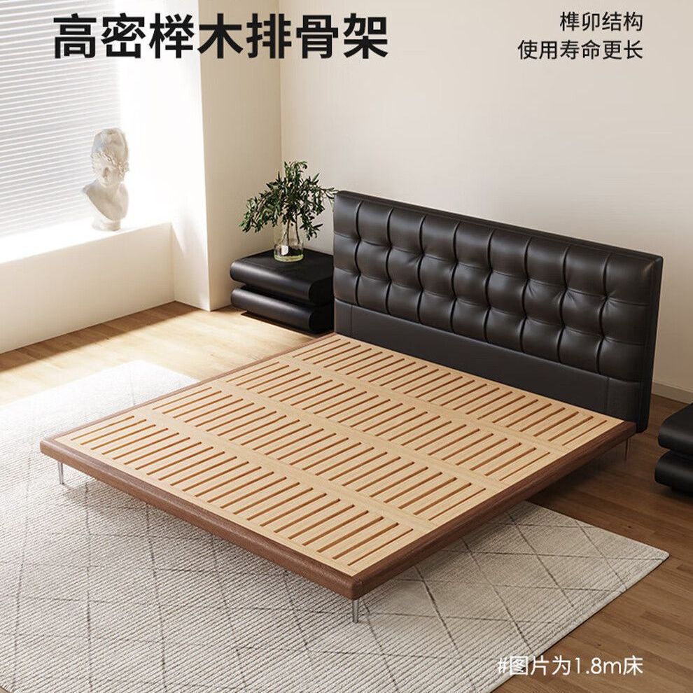 レトロなミッドセンチュリースタイルのブラックワッフルモダンシンプルな無垢材フレームダブルマスターベッドルームイタリアンウェディングベッド寝室