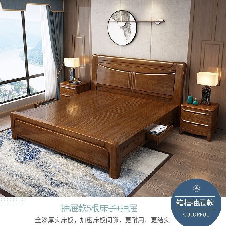 パープルゴールドサンダルウッド無垢材ベッドダブル1.8x2m収納ベッド1.5mホームモダンシンプルマスターベッドルームビッグベッド