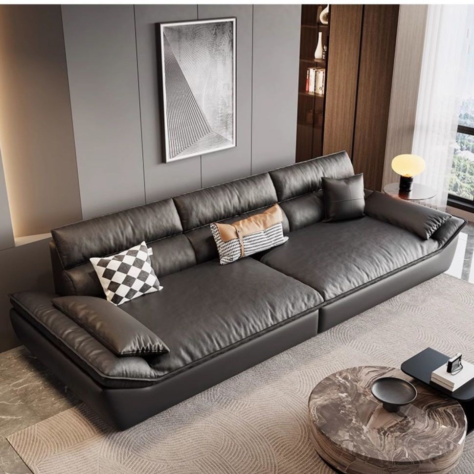イタリアンスタイルソファハイバックセーリングソファリビングルームストレートモダンミニマリスト超ワイドライトラグジュアリースーパーソフトレザーアートソファ