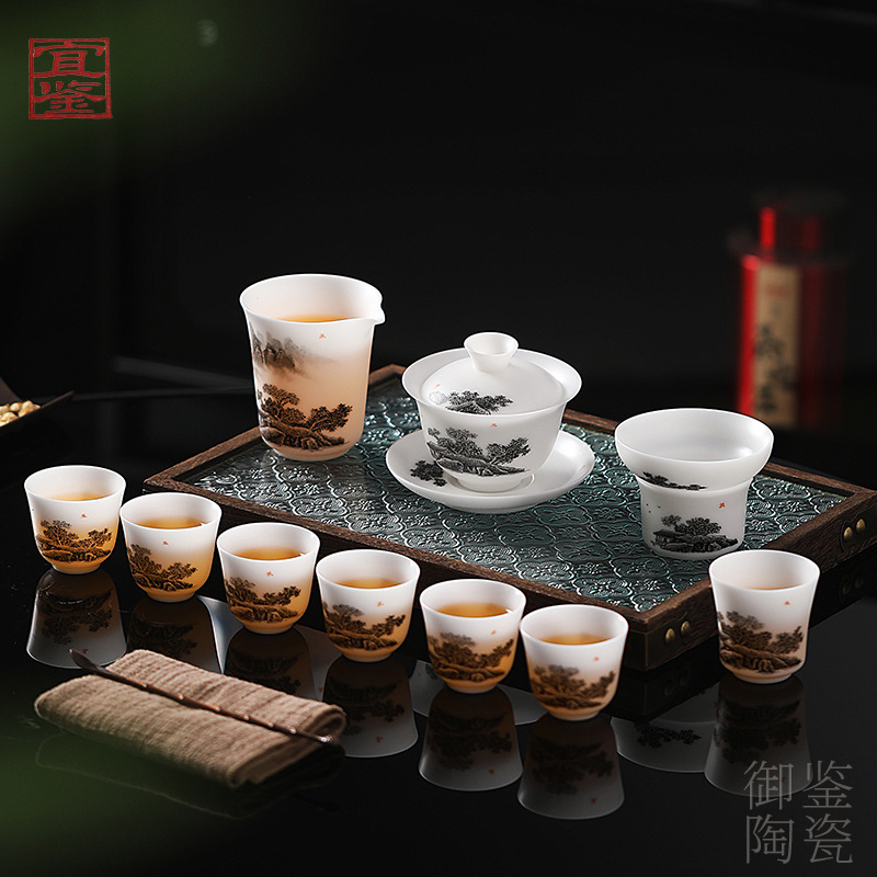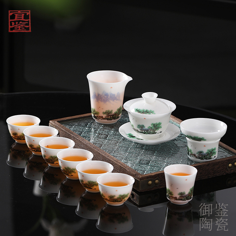 宜鑑手描き氷種羊脂玉茶器山林雅韻徳化玉磁器亮光工夫茶器ビジネスお土産