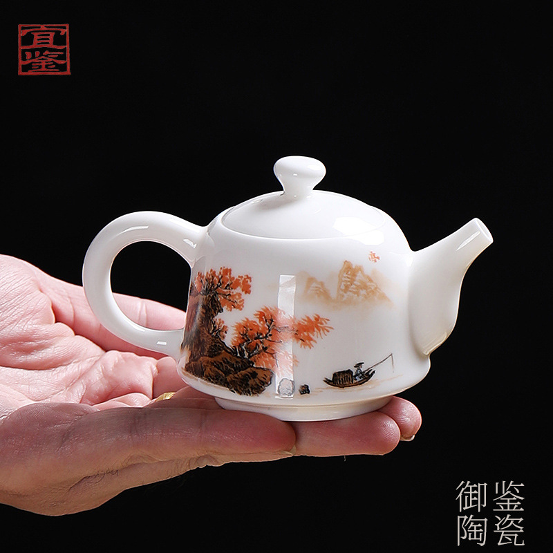 宜鑑茶韻大師手描きティーポット羊脂玉徳化白磁工夫ティーポット家庭用純手作りシングルポットプレゼント