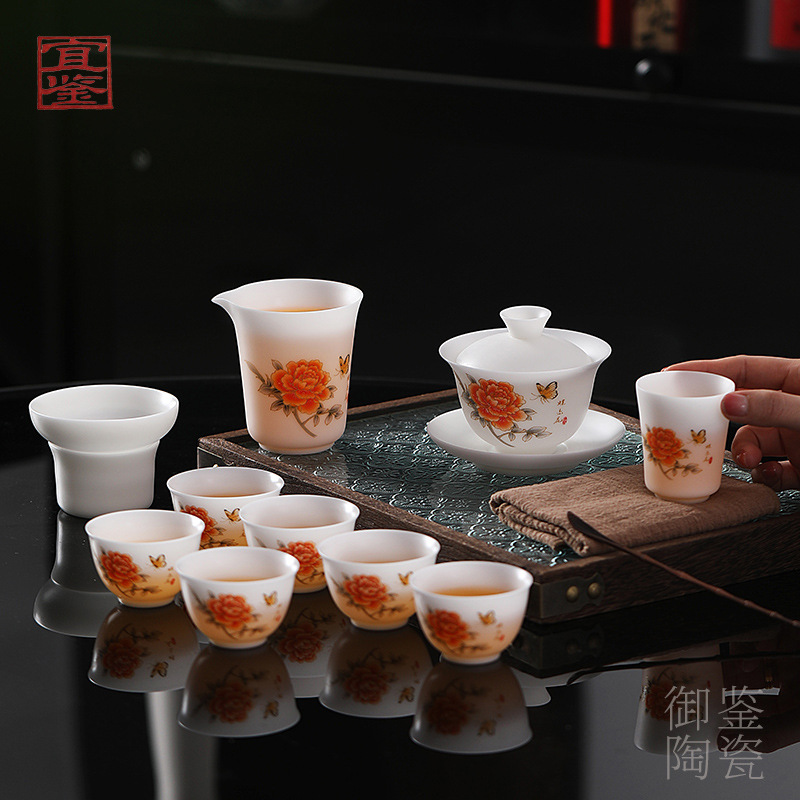 宜鑑氷種羊脂玉茶器紅牡丹亜光徳化玉磁器工夫茶器商用家庭用軽豪華プレゼント