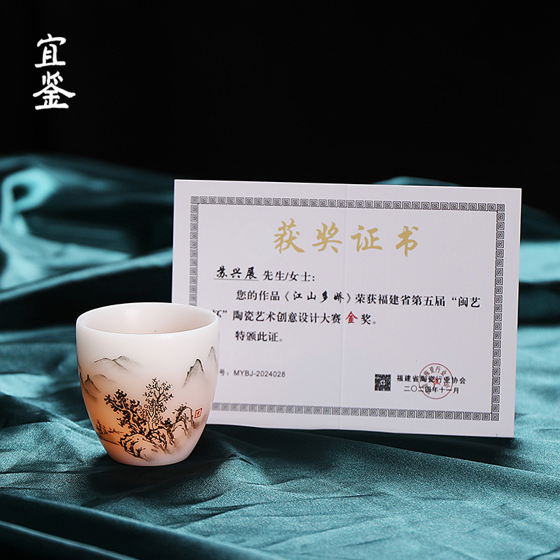 宜鑑氷種羊脂玉茶器徳化玉磁器工夫茶器江山多嬌金賞茶器軽豪華お土産