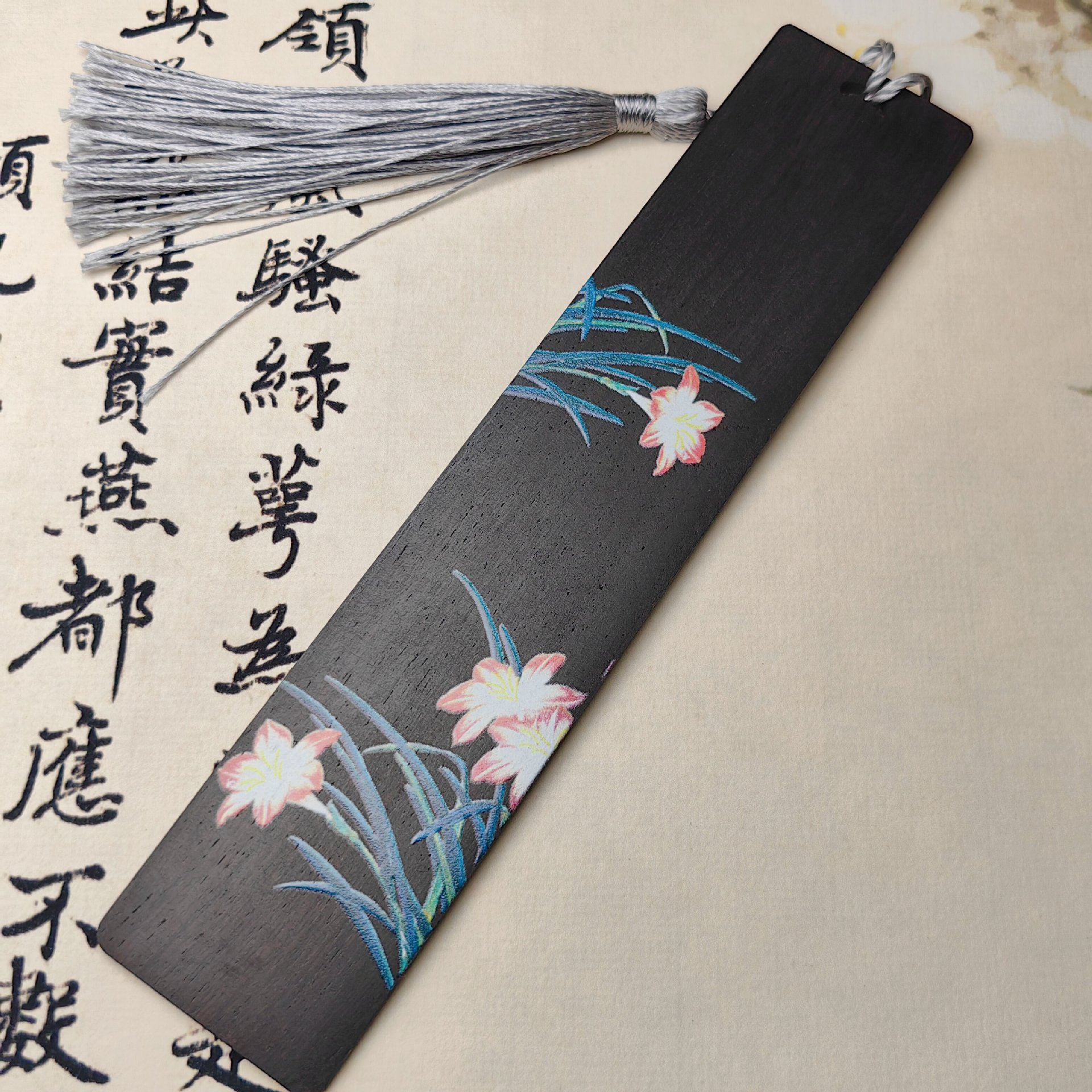 梅蘭竹菊黒檀木のしおりは中国風の古典的な観光記念品を描いています。