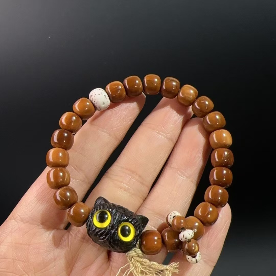 オリジナルDIY文游クック7x8mmシングルブレスレットと黒檀猫星月男女文游手串仏珠