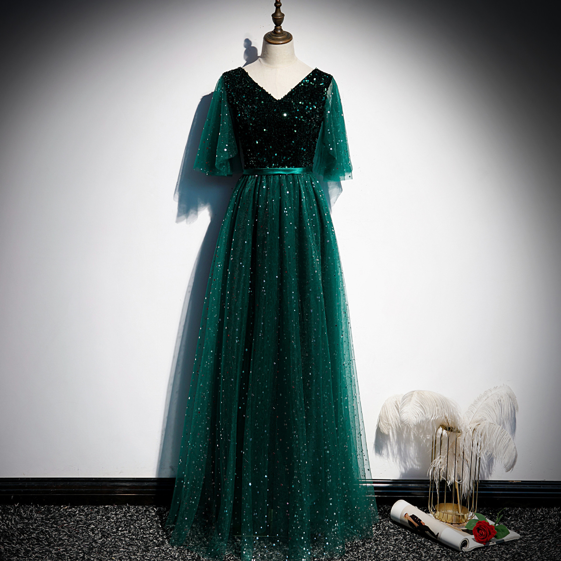 大合唱団公演服女性成人合唱試合服装墨緑司会者気質優雅ロングドレス