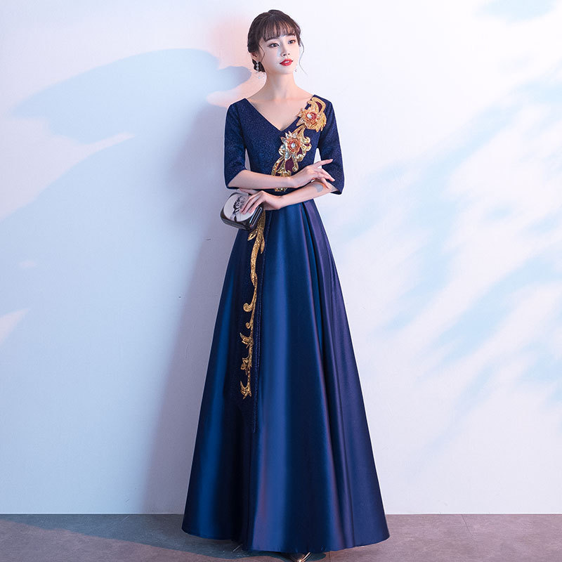 2025年春夏新作年次総会用イブニングドレス、エレガントな司会者・レセプション用ロングドレス、高級感のあるゴールド