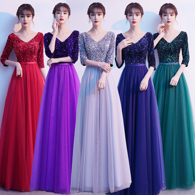 大合唱ドレス女性のための 2025 新しいパフォーマンスドレスロングスパンコールソロモダンホスト気質コーラスドレス