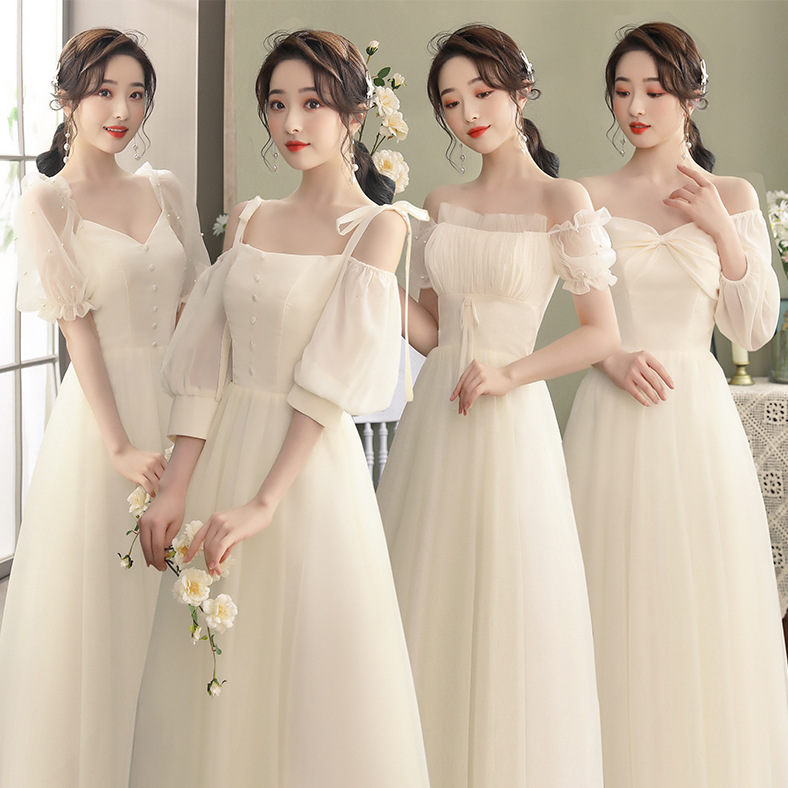 仙女のような気質のブライズメイドドレス 2025年新作 夏春向け 着痩せ効果あり 肉感カバー シスタードレス 親友 チームリーダー ロング丈ブライズメイドドレス 女性用