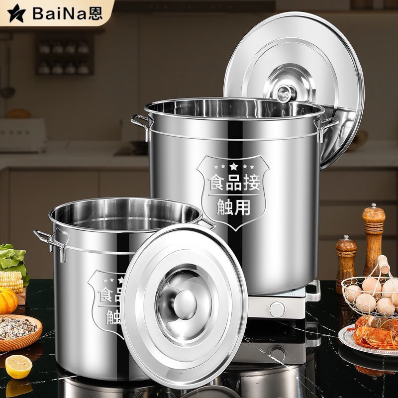 ステンレス鋼バレル蓋付き丸バレルスープポット商業スープバレル肥厚家庭用塩水バレルオイルバレル大容量ポットステンレス鋼