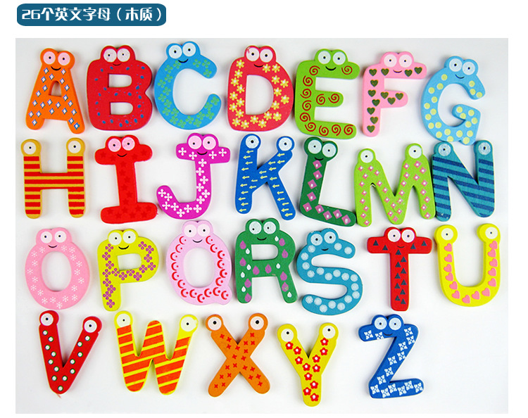 木製漫画早教アルファベット冷蔵庫貼り子供磁気貼りおもちゃ大サイズ26英語アルファベット貼り卸売り