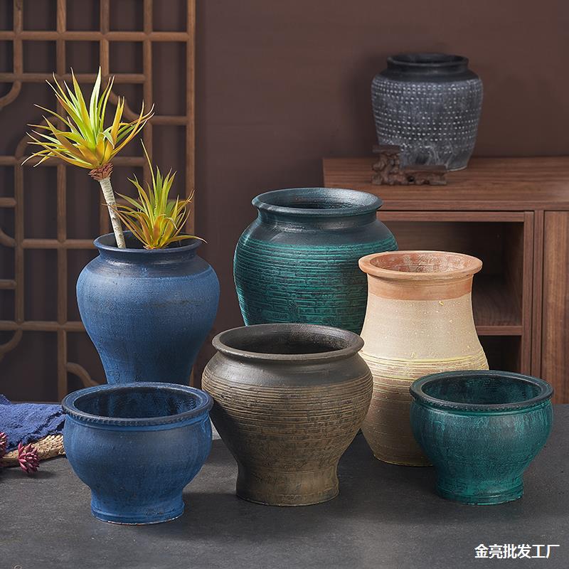 模造古粗陶缶花瓶花器多肉植木鉢レトロ土陶通気乾燥花作り旧土缶瓦缶つぼ