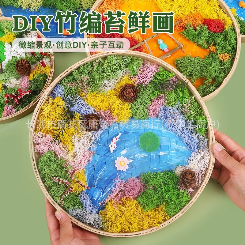 永遠の苔絵画材料パッケージ竹バスケット手作り DIY 竹フレームクリエイティブ植物絵画緑の植物フォトフレームウォームアップチームビルディング