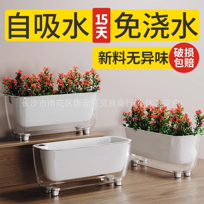 長方形の透明なポトスバスケット水貯蔵タンク自動自吸式水耕植木鉢バルコニー植栽鉢専用