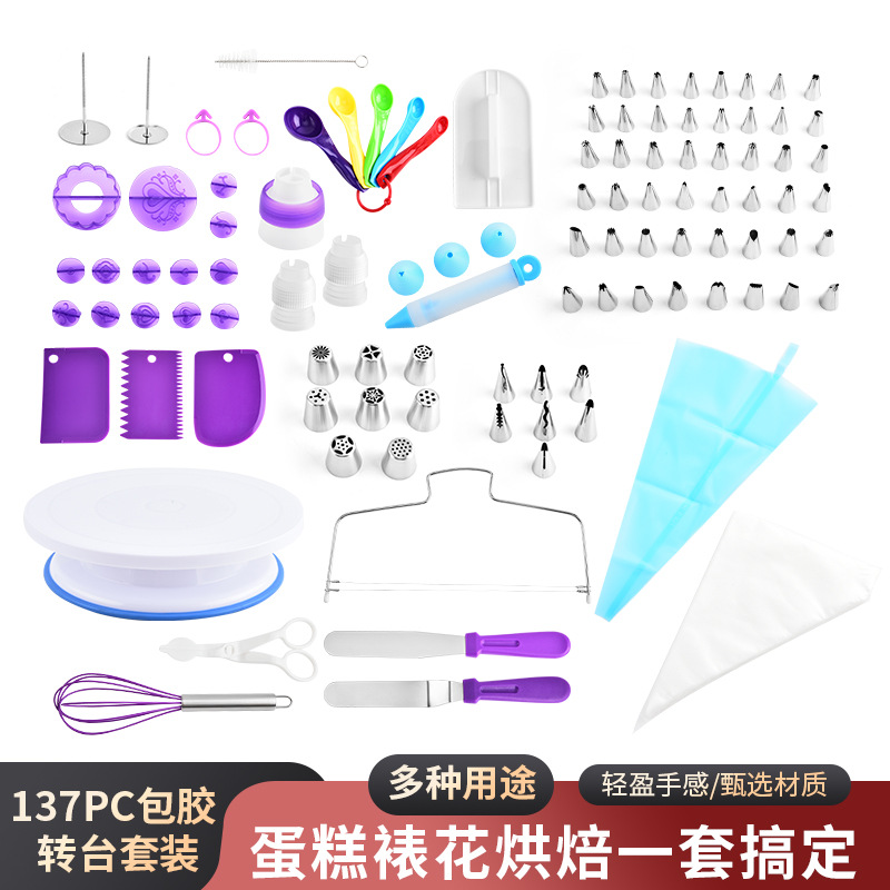メーカー卸売りステンレス製表装口セットケーキ台クリーム銃クッキー表装袋207点焙煎セット
