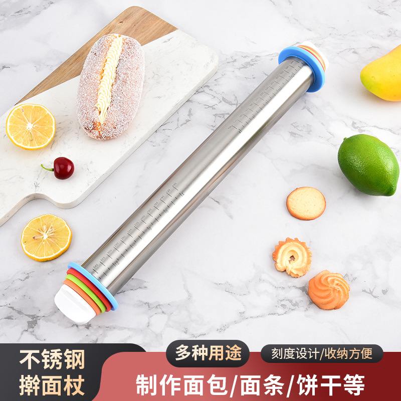 メーカー卸売りステンレス製めん棒家庭用目盛り付き麺棒小麦粉棒押え麺杖キッチン揉み工具